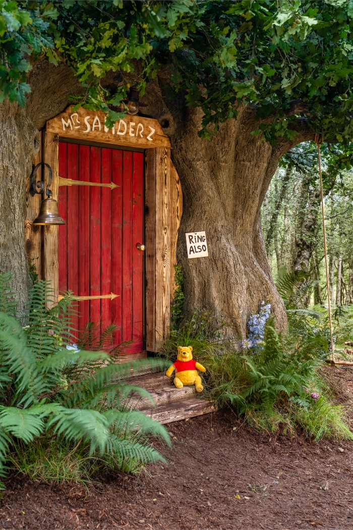 La casa de árbol, que puede ser alquilada por medio de la plataforma Airbnb, fue construida en el Ashdown Forest, la reserva natural donde el escritor británico A. A. Milne obtuvo la inspiración para crear el universo de Winnie the Pooh.