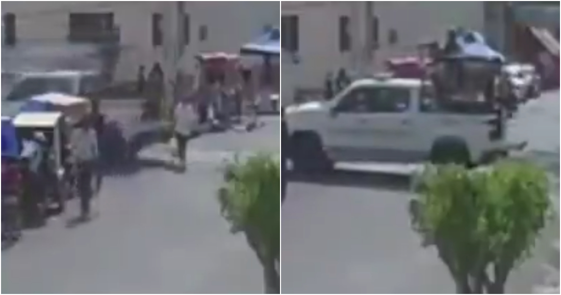 Sin embargo, la primer mujer pone en marcha la camioneta, presuntamente por accidente, por lo que ésta arranca y atropella a la segunda joven, quien cae al piso y queda entre el vehículo y una especie de banqueta.
