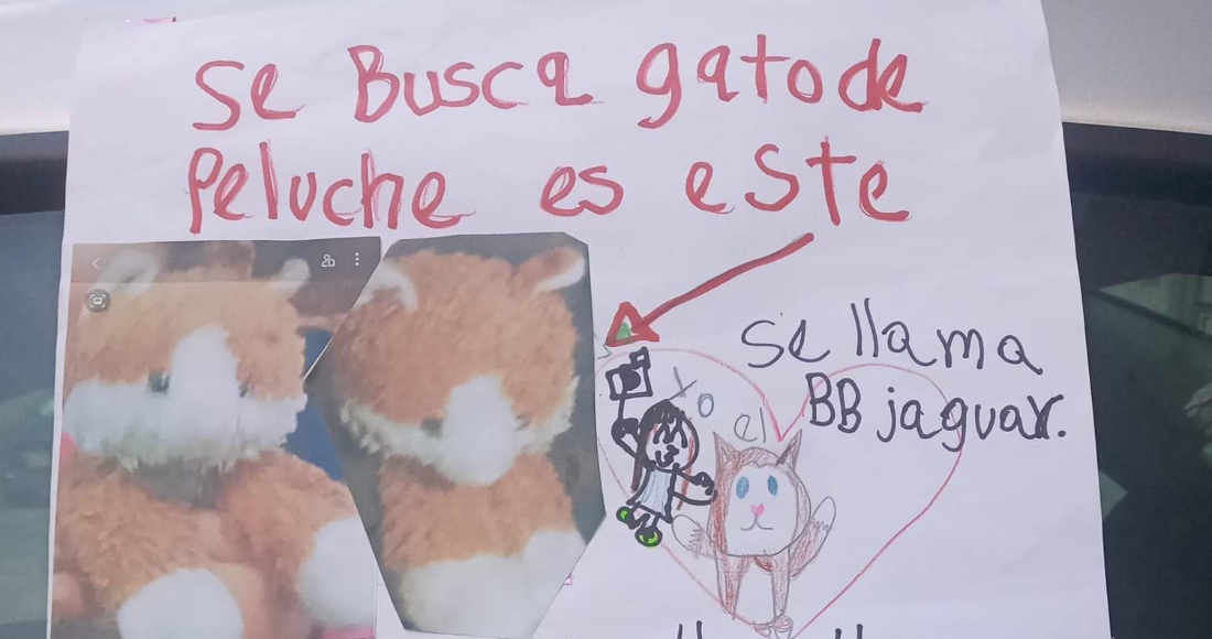 Ciudad de México, 24 de septiembre (SinEmbargo).- Por redes sociales viralizó la imagen de un cartel hecho con puño y letra de una niña de siete años pidiendo el rescate de su gato de peluche que extravió el pasado 17 de septiembre en la Plaza Encuentro Fortuna, ubicado en la Alcaldía Gustavo A. Madero de la Ciudad de México.