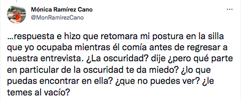 “‘Joaquín ¿a qué le temes?’, le pregunté al ‘Chapo’ Guzmán mientras este comía dentro del espacio que se adaptó para nuestras entrevistas. Yo tomaba agua y estábamos relajados”, señala su primera publicación del hilo.