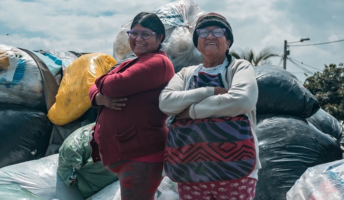 El plástico lo proveen los recicladores de base, personas que recolectan, limpian y clasifican varios tipos de residuos a los que se les puede dar un nuevo uso.