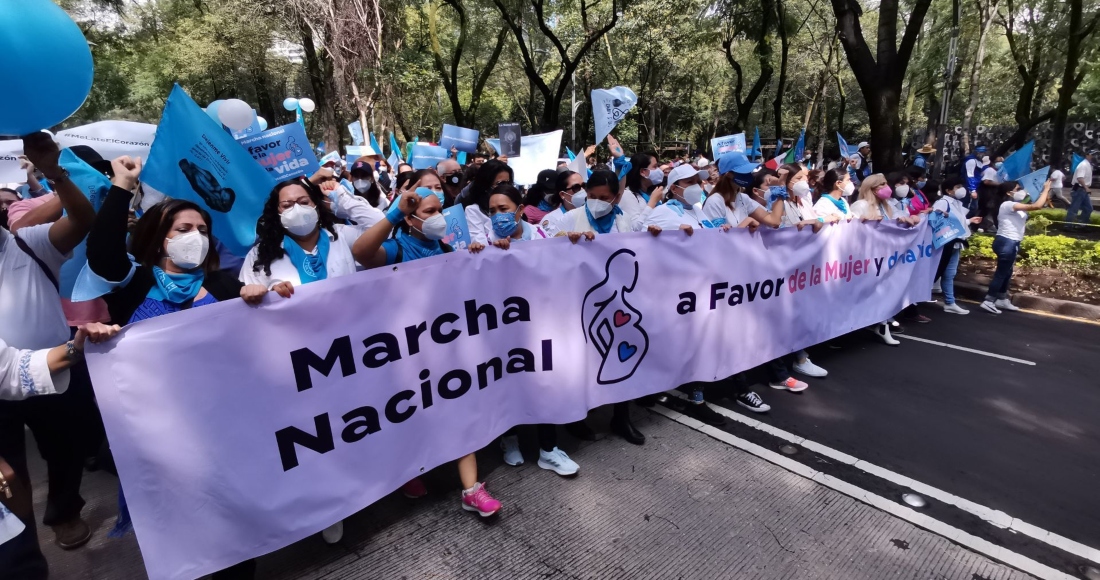 Con gritos de "Vida sí, aborto no", los manifestantes, la gran mayoría mujeres vestidas de blanco y azul, caminaron por el centro de la capital mexicana. Fueron convocadas bajo el lema de "Marcha en favor de la mujer y la vida" y con el apoyo de los obispos mexicanos.