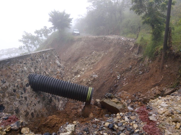 Así quedó el camino tras las lluvias por el frente frío de estos días. El tubo negro es de alcantarilla. Foto: Comité Comunitario de San Felipe Tepatlán.