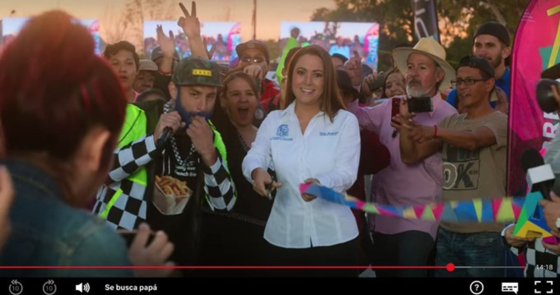 "La Alcaldesa aparece en la película (tiempo 1:28:43) vistiendo una blusa blanca con el emblema del municipio de Aguascalientes, en una escena que está relacionada con el inicio de una carrera", según mencionó el documento de la queja presentado por el partido Movimiento Ciudadano (MC).