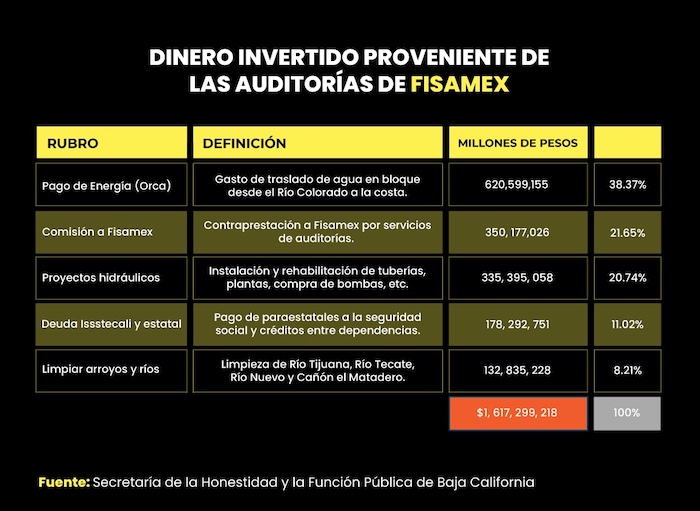 A esa partida se le inyectaron 501 millones de pesos extraordinarios, de acuerdo con la cuenta pública 2020 de la Comisión Estatal de Servicios Públicos de Tijuana (CESPT), la paraestatal responsable de suministrar agua en la ciudad fronteriza.