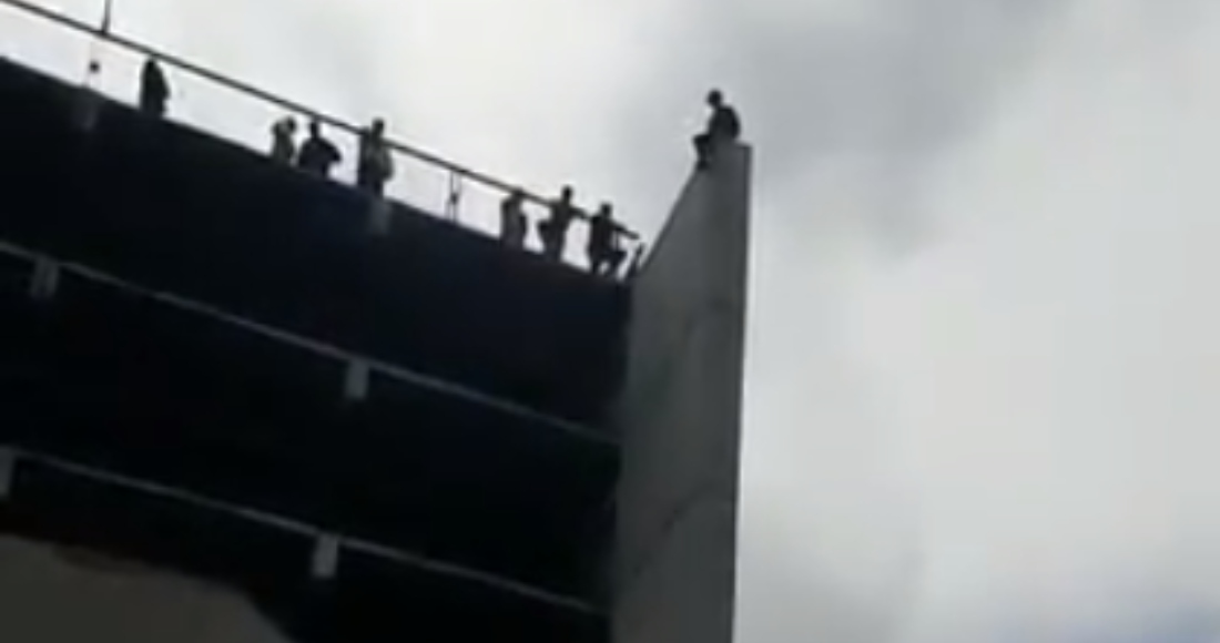 Por medio de un video compartido en redes sociales, se mostró como el hombre se encontraba a un lado del vehículo destrozado por la caída.