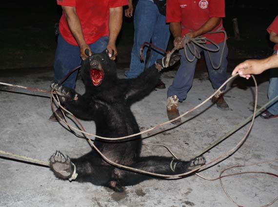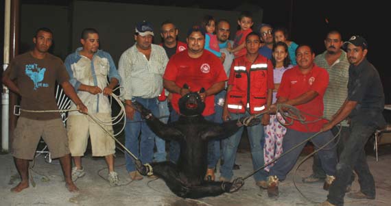 Para bajar a la osa del árbol donde se trepó, dijo, “fue necesario utilizar unas ‘reatas’ o mecates para lazarla, someterla y posteriormente enjaularla para esperar las indicaciones de la Secretaría del Medio Ambiente de Coahuila, (SEMAC)”.