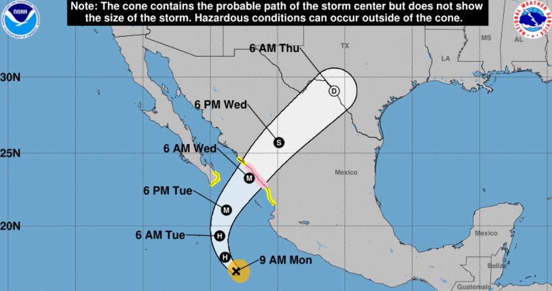 Posteriormente, se prevé que se debilite mientras atraviesa el norte de México y se aproxime el jueves a la frontera con Texas como depresión tropical.