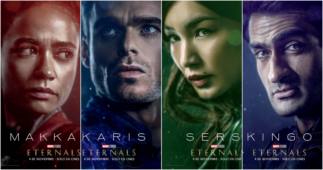 Eternals está protagonizada por Richard Madden como el todopoderoso Ikaris, Gemma Chan como Sersi, amante de la humanidad, Kumail Nanjiani como Kingo, la potencia cósmica, Lauren Ridloff como el superrápido Makkari, Barry Keoghan como el distante y solitario Druig, Brian Tyree Henry como el inventor Phastos, Salma Hayek como la sabia y espiritual líder Ajak, Lia McHugh como el eternamente joven Sprite, Don Lee como el poderoso Gilgamesh y la ya mencionada Angelina Jolie como la feroz guerrera Thena.