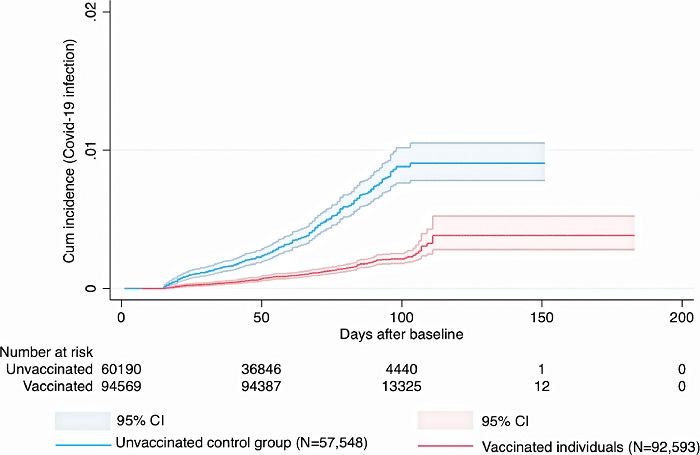 Estas estimaciones de riesgo se observaron después de tener en cuenta las diferencias con respecto a la fecha de vacunación, la edad de los participantes, el estado socioeconómico y otros factores de riesgo de COVID-19.