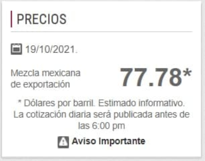 De acuerdo con el portal de Petróleos Mexicanos (Pemex), el crudo mexicano continúa mostrando un buen desempeño colocándose por encima de los 74 dólares desde inicios de octubre.