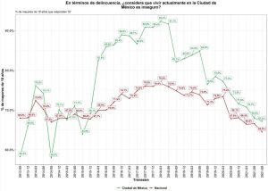 Sin embargo, desde el tercer trimestre de 2019, el Inegi registró una tendencia de niveles mínimos en la percepción de inseguridad en todas las zonas de la capital.