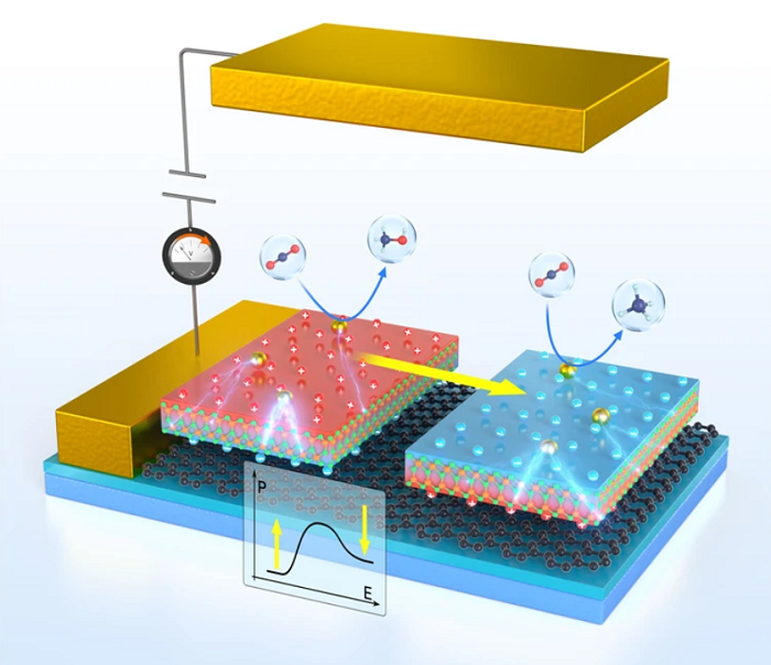 En el modelo teórico, los investigadores encontraron que la adición del átomo del metal catalizador al material ferroeléctrico resultó en la conversión del gas de efecto invernadero en un combustible químico deseado.