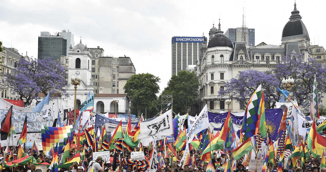La gente coreaba “El pueblo es más fuerte, más fuerte” y “¡La retirada no es una opción!” mientras el humo de los neumáticos en llamas se alzaba en el aire.