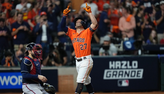 Y Houston montó un ataque de cuatro carreras en la segunda entrada para una victoria de 7-2 sobre Atlanta el miércoles por la noche igualando la Serie Mundial a un triunfo por bando.
