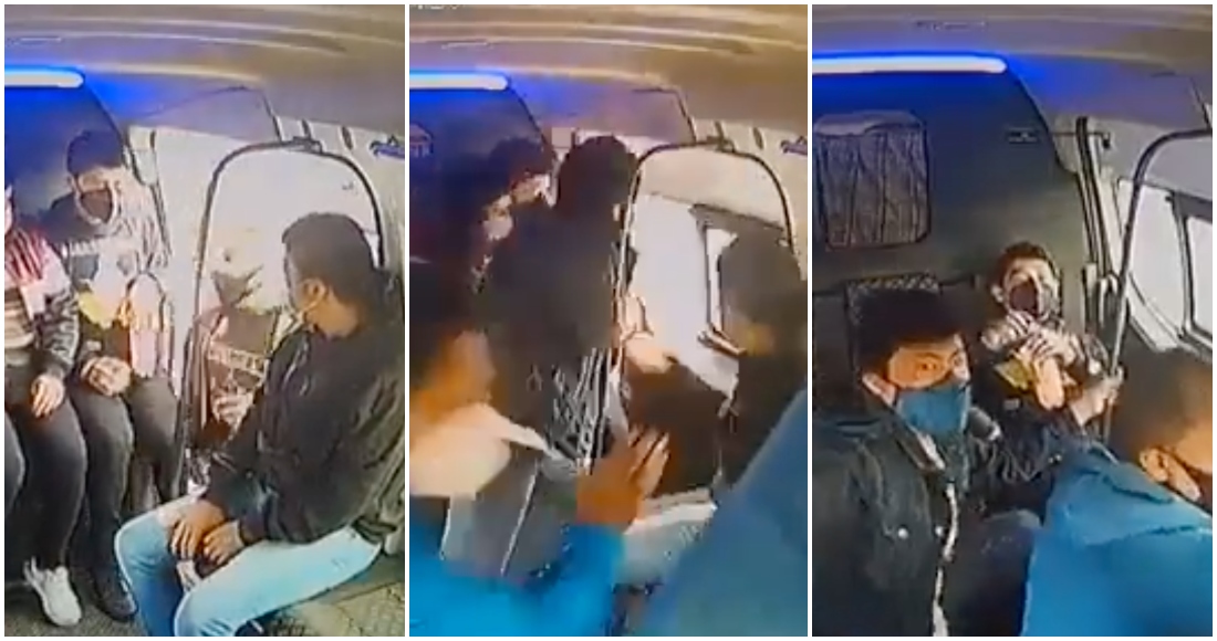Los hechos fueron difundidos a través de dos videos que circulan en redes sociales, en los que se observa a dos sujetos vestidos con cascos y chalecos de trabajadores de la construcción que subieron a la unidad como pasajeros y amenazaron las personas que iban a bordo.