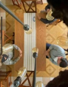 A la mesa en la que están ambos personajes, se acerca y se sienta otro hombre que al igual que Zuriel de los Santos porta cubrebocas blanco y que se especula que puede ser algún jefe de la Policía Ministerial.
