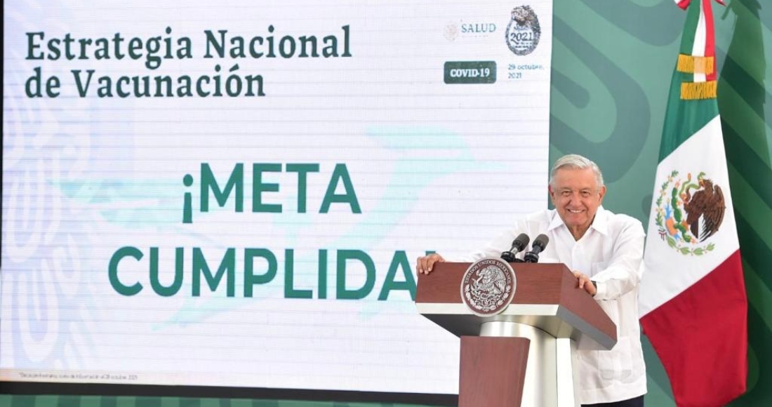 Durante esta mañana, López Obrador informó desde Campeche que cumplió con su compromiso de inmunizar a todos los adultos mayores de 18 años que quisieron vacunarse contra el COVID-19 antes de que acabara octubre.