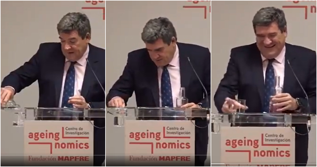 El suceso tomó relevancia en redes sociales luego de que se mostrara al Ministro de Inclusión, Seguridad Social y Migraciones de España al confundir el hueco de un atril con un vaso de agua.
