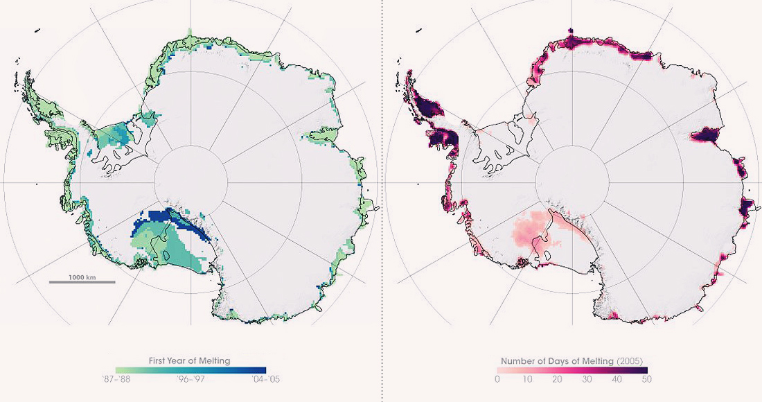 Aunque entre 2000 y 2015 la expansión de hielo marino antártico produjo un efecto de enfriamiento que compensó el efecto de calentamiento causado por el deshielo en la región del Ártico, en 2016 se redujo la capa de hielo marino de la Antártida, lo que revirtió por completo este efecto de enfriamiento.