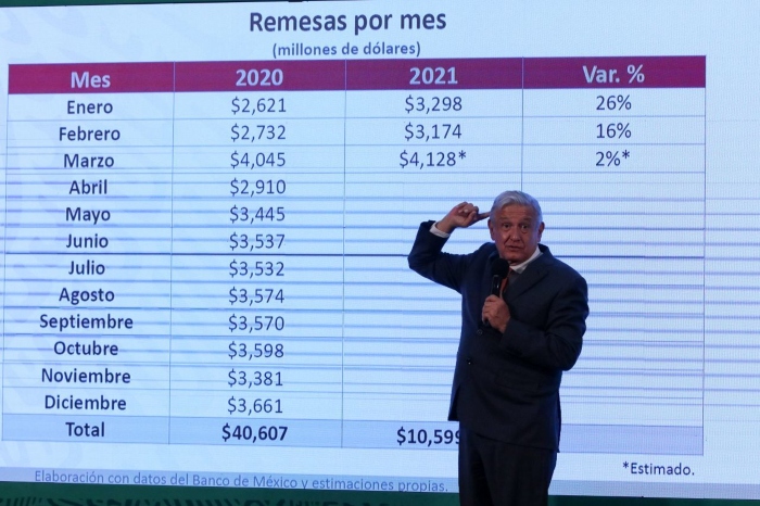 Por ello, el Gobierno de México confía en que las remesas ayuden a levantar la economía del país, que presentó una contracción del 8.2 por ciento en 2020.