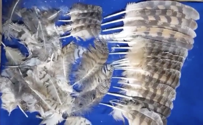 El mismo usuario también vende en otro video alrededor de 80 plumas de búho cornudo americano. Para él son insumos para artesanos o danzantes.