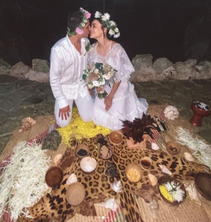 "Fuimos bendecidos por los dioses mayas y la madre Tierra", dijo sobre su boda celebrada hace una semanas.