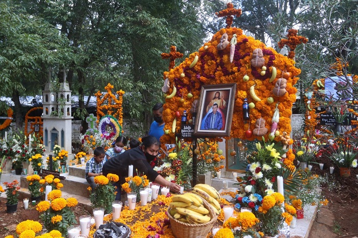 Cabe señalar que, incluso, en algunos cementerios como en la isla de Janitzio, en el Lago de Pátzcuaro, Michoacán, los residentes adornan las tumbas con infinidad de flores de cempasúchil y veladoras, que iluminan la noche en que los visitantes le hacen compañía a sus difuntos, a quienes les hacen ofrendas de alimentos.