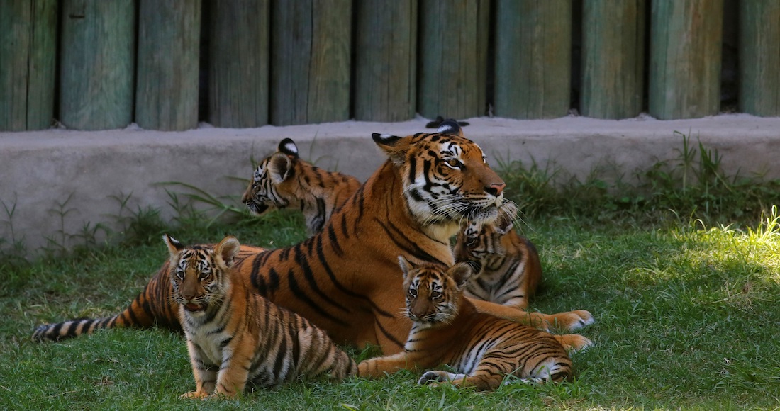 Esta familia de tigres permanecen en el dormitorio donde se resguarda la madre por el invierno. Thalía sale en ocasiones de él, pero sus cachorros permanecen dentro para estar protegidos.