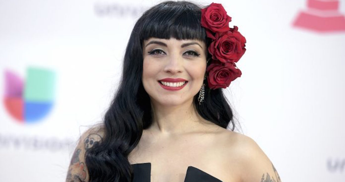 La cantante chilena Mon Laferte durante una rueda de prensa en Ciudad de México. Foto: EFE