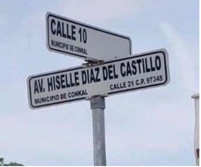 La mandataria nombró como Avenida Hisselle Díaz del Castillo a la Calle 21 entre calle 10 del municipio de Conkal, situación que a los pobladores no les gustó nada, por lo que la llamaron irresponsable por no cumplir con sus obligaciones como Alcaldesa, pero si estar pendiente de poner su nombre a una avenida.