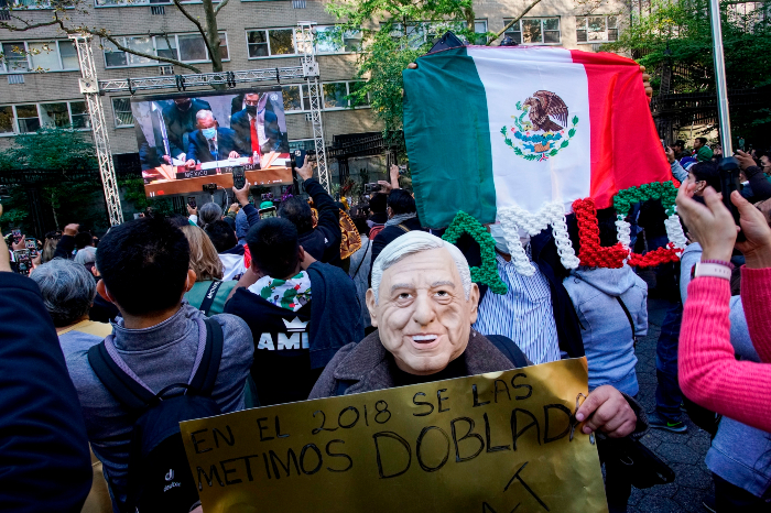 La Policía de Nueva York implementó en la zona un pequeño dispositivo de seguridad para mantener el orden entre los simpatizantes de AMLO.