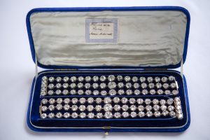 Los brazaletes, que pertenecieron a María Antonieta de Francia aproximadamente en 1776, además de diamante, tienen plata y oro amarillo.