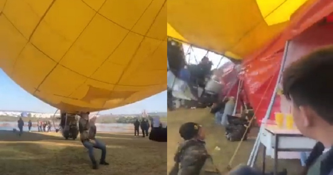 Un video captó el momento en que el globo aerostático se descontroló y arrasó con varios puestos de comida que se instalaron en el FIG. Aunque alguien intentó detener el artefacto, sus esfuerzos no rindieron éxito, y sí provocó un gran susto a los asistentes.