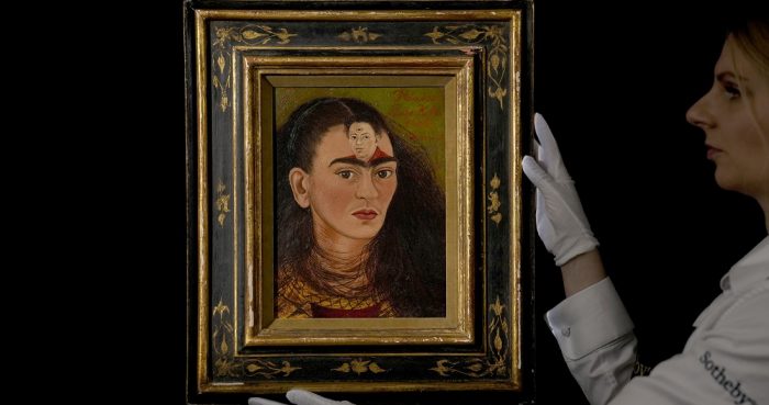 Nueva York, 16 de noviembre (AP).- Un autorretrato de Frida Kahlo con lágrimas en los ojos y el rostro de Diego Rivera pintado en la frente se vendió por casi 35 millones de dólares en una subasta en Nueva York, superando por más del triple el récord para la pintora mexicana y para una obra de arte latinoamericano.