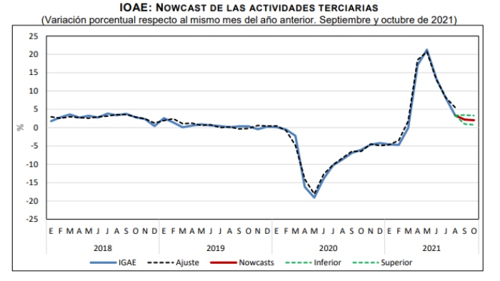 El Indicador Oportuno de la Actividad Económica #IOAE estima anticipadamente una variación anual del Indicador Global de la Actividad Económica #IGAE para octubre de 2021, de 1.9%.#IGAE https://t.co/tqW11RcaRg pic.twitter.com/s1UL6zIazT