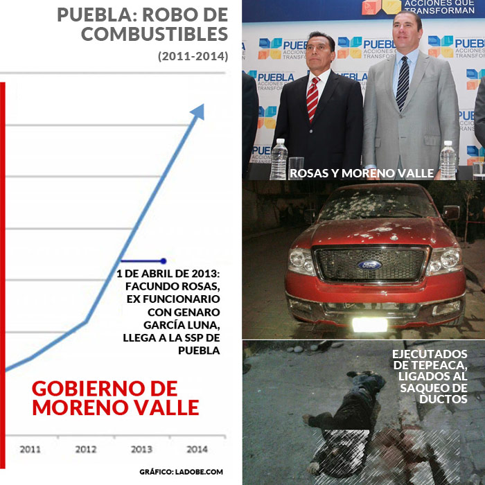 Su mentor Facundo Rosas dejó en 2015 la Secretaría de Seguridad de Puebla luego que gente a su cargo fuera detenida por su colusión en el robo de combustible. Uno de esos hombres, el director general de la Policía Estatal Preventiva, Marco Antonio Estrada López, fue llevado por Santizo, quien además fue mencionado en aquel entonces como perteneciente a una red de policías que protegían a huachicoleros.