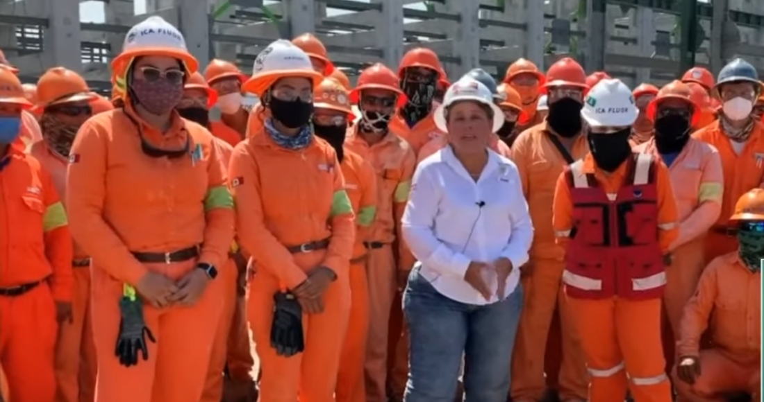 La Secretaria Rocío Nahle destacó que la construcción de la refinería Olmeca en Dos Bocas, presenta un avance físico del 69.2 por ciento y un avance financiero de 65.6 por ciento. Foto: Twitter @rocionahle