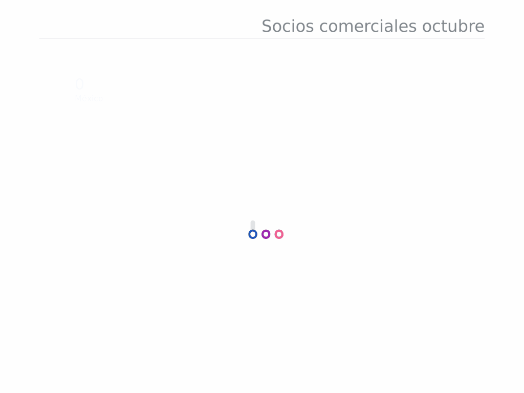 El primer lugar lo tuvo China, con 64 mil 700 millones de dólares. En ese sentido, cabe destacar que éste fue el país con mayor crecimiento en su relación comercial con EU, pues pasó de un 14.1 por ciento en septiembre a 15.6 por ciento en octubre.