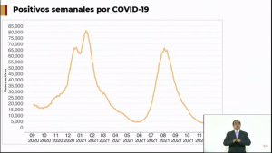 "Estamos por abajo de nuestro mínimo que había sido la semana pasada con 92 casos positivos, estamos cerca de 70 positivos diarios". El total de ellos que han salido positivos han sido el 2.1 por ciento, "un mínimo histórico" de las personas que se hacen pruebas. Es decir, se nota una mejoría del 2.6 de la semana pasada. "Son parámetros que durante muchos meses de la pandemia no veíamos ni de cerca", concluyó.