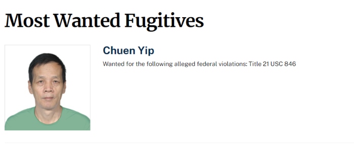 Este miércoles, el organismo estadounidense actualizó su listado de los fugitivos más buscados y colocó en la primera posición a Chuen Yip, quien es señalado como presunto proveedor de fentanilo del Cártel de Sinaloa en México.