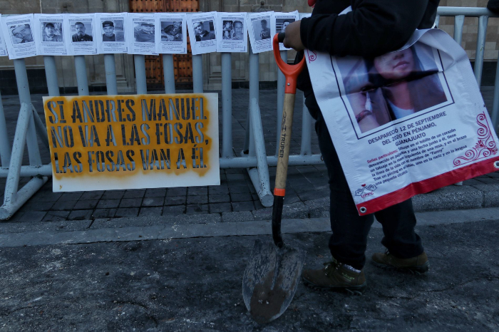 La situación que guarda el tema llevó a que horas antes de que fuera presentado este informe, activistas y colectivos de familiares de personas desaparecidas de Guanajuato se manifestaran afuera de Palacio Nacional bajo la consigna: “Si Andrés Manuel no va a las fosas, las fosas vienen a él”; para ello recrearon estos entierros.