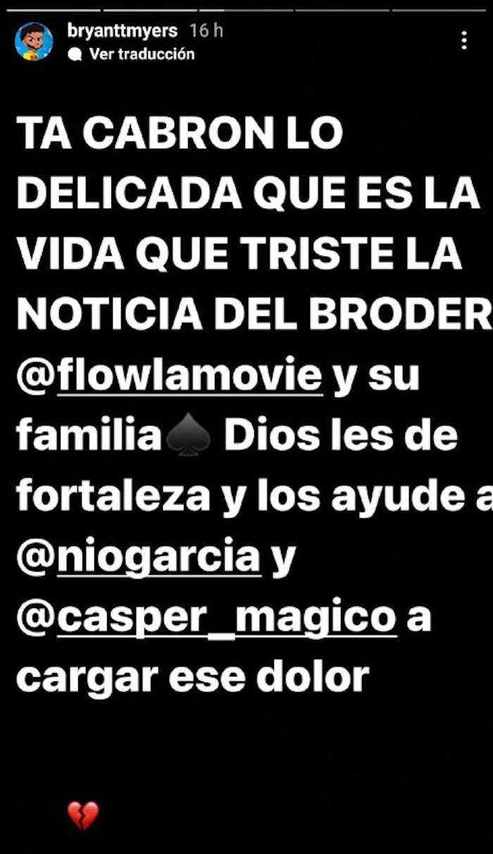 "Ta cabrón lo delicada que es la vida, que triste noticia del broder @flowlamovie y su familia", lamentó Myers.