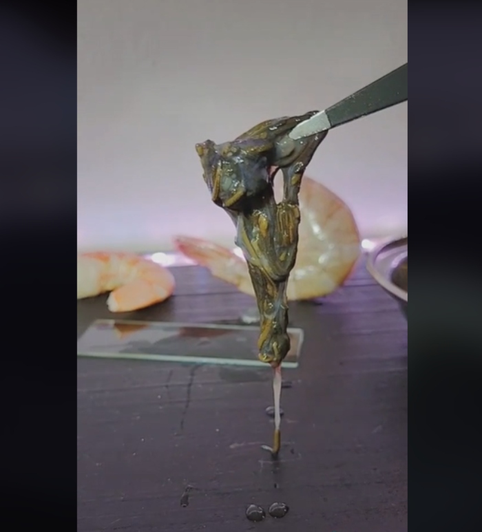 VIDEO: ¿Te comes “la tripa” del camarón? Tiktoker la ve en microscopio y dice qué es