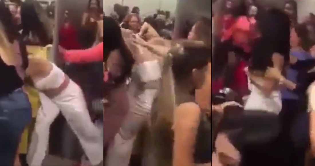 En el clip se observa sólo el momento en que varios de los empleados intentan calmar la situación y separar a las mujeres.