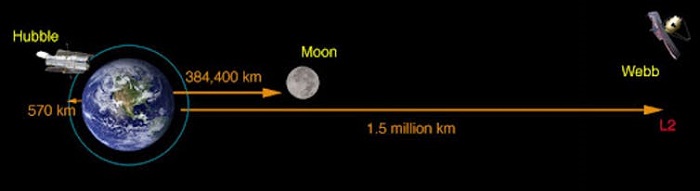 Posición del telescopio espacial James Webb orbitando la Tierra. Foto: NASA.