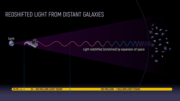 Pero su mayor fortaleza será la observación de las galaxias más lejanas y antiguas del universo. Debido al efecto conocido como desplazamiento hacia el rojo, la luz emitida por estas galaxias primitivas (y que se alejan a mayor velocidad de nosotros) será detectada por el nuevo telescopio espacial en el rango del infrarrojo, algo impensable para observatorios terrestres (incluido el telescopio espacial Hubble).