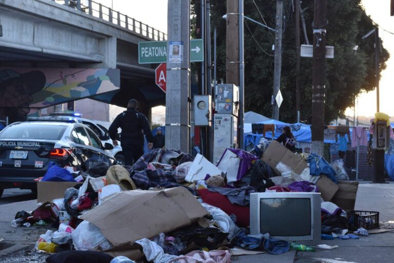 Tijuana, 27 de diciembre (ZETA).- En vísperas de año nuevo siguen llegando a Tijuana cientos de personas en contexto de movilidad provenientes principalmente de Haití, El Salvador, Honduras y Guatemala. Las familias de hasta seis integrantes llegan al campamento migrante instalado y cercado en las inmediaciones del cruce peatonal a Estados Unidos.