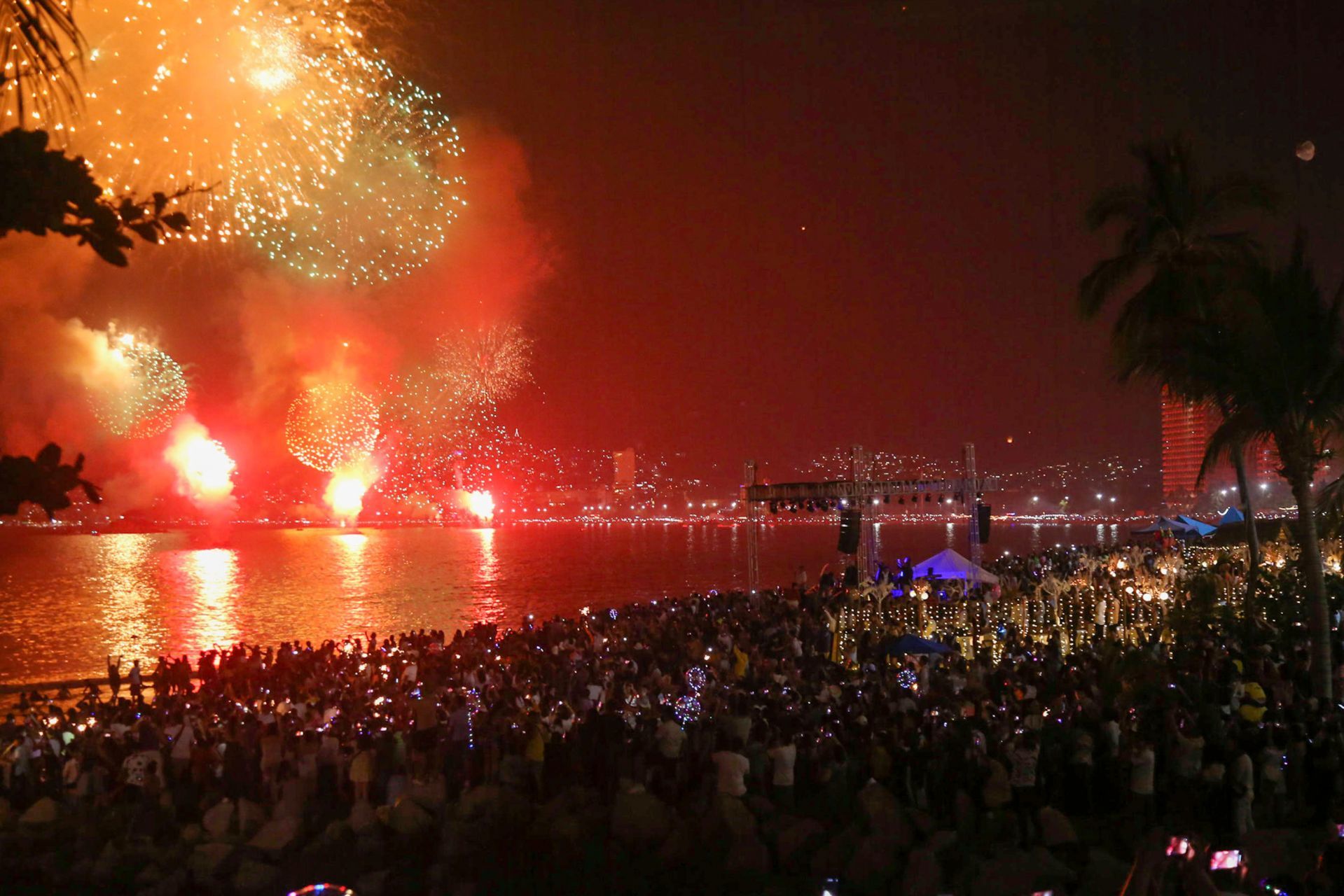 La noche del viernes para amanecer este sábado, miles de turistas y acapulqueños presenciaron el espectáculo de fuegos pirotécnicos para recibir el Año Nuevo.