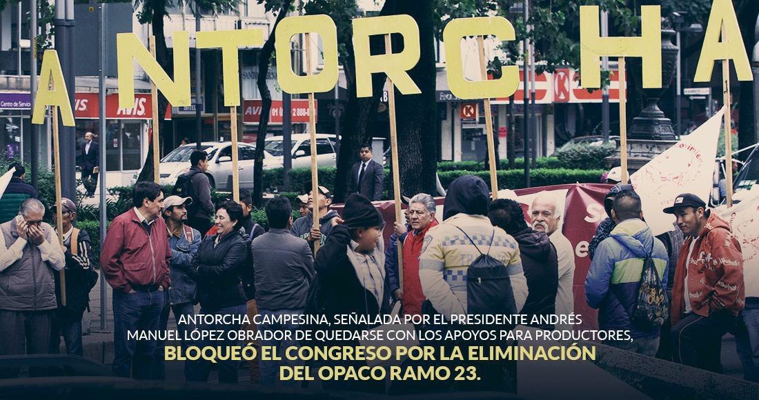 El Presidente Andrés Manuel López Obrador ha señalado al grupo antorchista como uno de los "intermediarios" que se quedan con los moches del presupuesto, como el extinto Ramo 23, cuestionado por su opacidad y falta de reglas de operación. SinEmbargo además documentó que en el sexenio peñista recibieron concesiones para operar gasolineras.